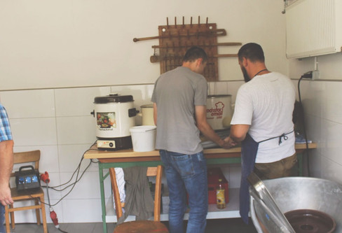 Geduldig warteten die Gäste auf ihr leckeres Essen in Form von gefüllten Klößen mit Apfelkompott, Spitzklößen und Gulasch.